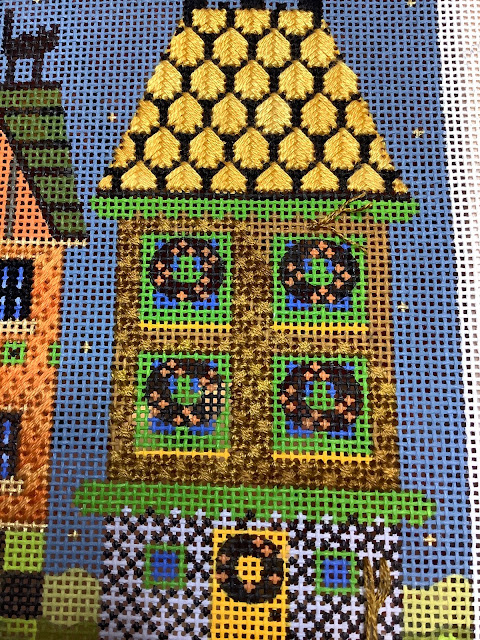Yes, but it's the Halloween House Row from Melissa Shirley.  I can't stop stitching this cute thing.  It is that much fun.  I really need to be finishing up the Christmas items for this year.  I think I will give myself the Memorial Day weekend and then get back to business.    I bought the canvas, stitch guide and threads from Amy's Golden Strand.
